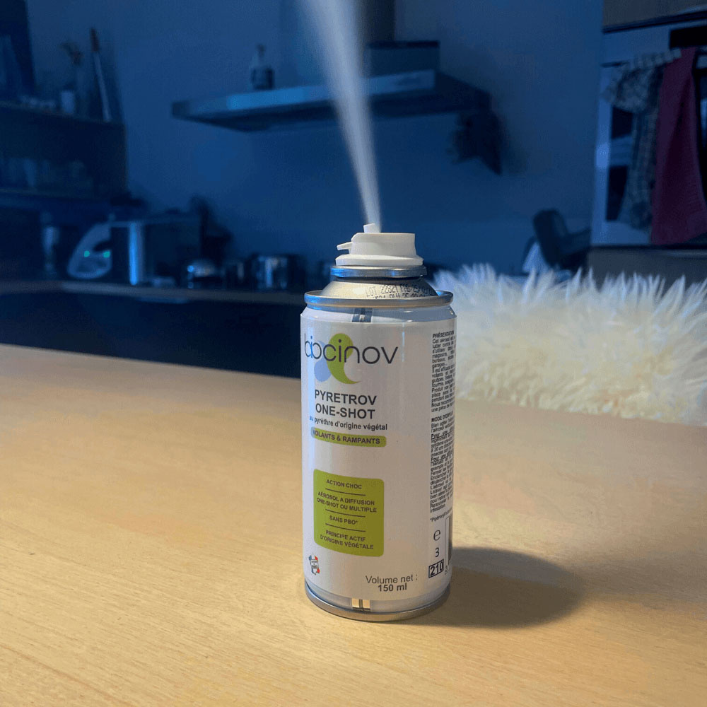 PYRETROV ONE-SHOT aerosol combines two active substances of plant origin which allow a shock elimination of crawling and flying insects. Its low remanence makes it an ideal insecticide for the treatment of living and food areas (dining rooms, kitchens, etc.).