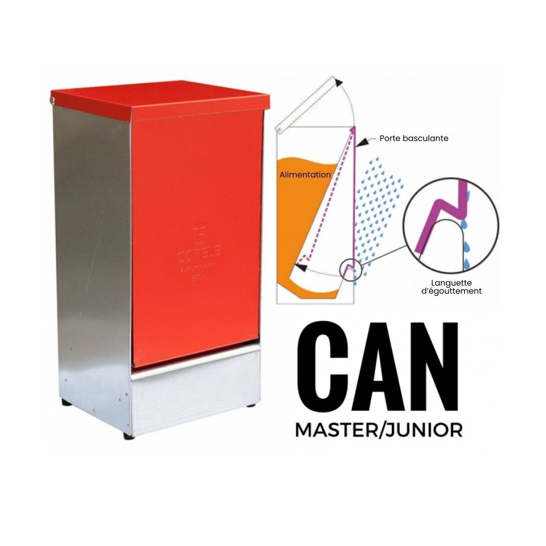 This 27-litre CAN galvanized sheet metal hopper feeder, designed for dog farms, keeps food dry and cool, thanks to its hinged door and drip tray. Robust and practical, it protects the food.