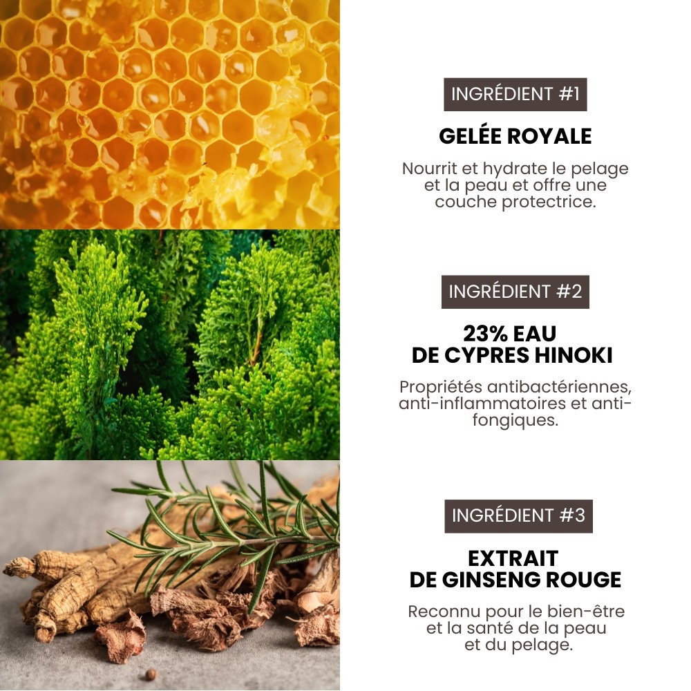 Its multi-functional formula nourishes while respecting the balance of the skin and coat for better manageability and a healthy-looking shine. It is made from natural, 100% hypoallergenic ingredients designed to provide gentle, delicate care for your pet. It delivers a pleasant fragrance to the coat developed by our professional perfumers.