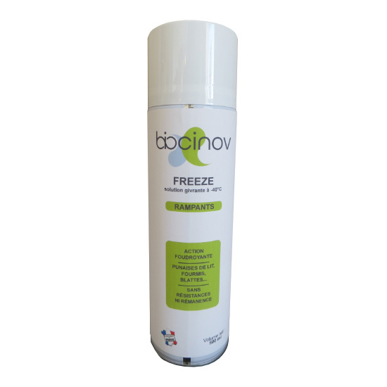 This Freeze aerosol is a solution for the lightning elimination of insects by the effect of cold, thanks to a jet at the exit of the aerosol of -40°C. With no active ingredient and a physical action, it has no resistance or persistence. Its formulation is odourless and does not leave stains on walls and surfaces.