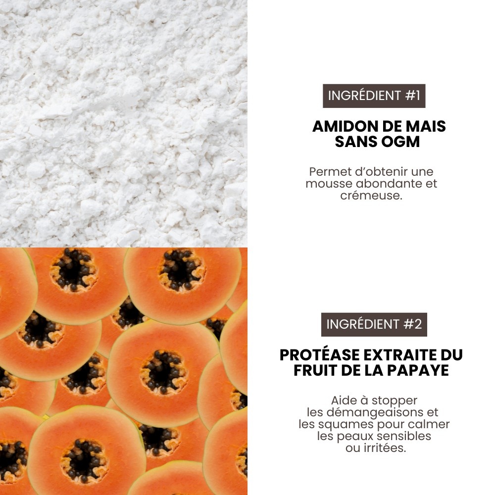 It specialises in the use of a secondary surfactant of 100% natural plant origin, excluding all highly toxic synthetic chemical surfactants. It's a protease extracted from papaya fruit that helps manage sebum, dandruff and flaky skin. It contains no fragrance or pigment to minimise skin irritation. Papaya enzyme offers unique healing and beneficial properties help stop itching and flaking to calm sensitive or irritated skin.