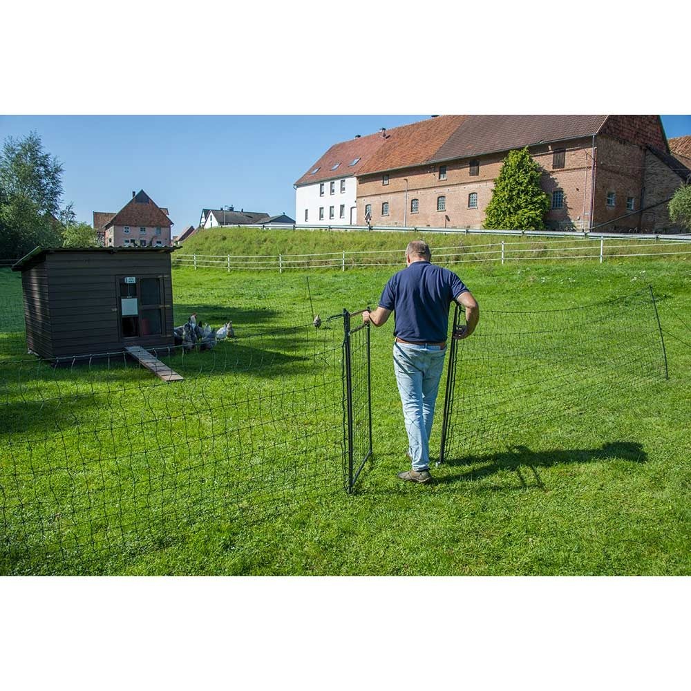 Il peut se monter sur des clôtures déjà existantes, qu'elles soient électrifiables ou non, et ses piquets à double pointe lui confèrent une grande stabilité. Il mesure 1.20m de haut et 0.90m de large et est doté de 15 fils horizontaux.