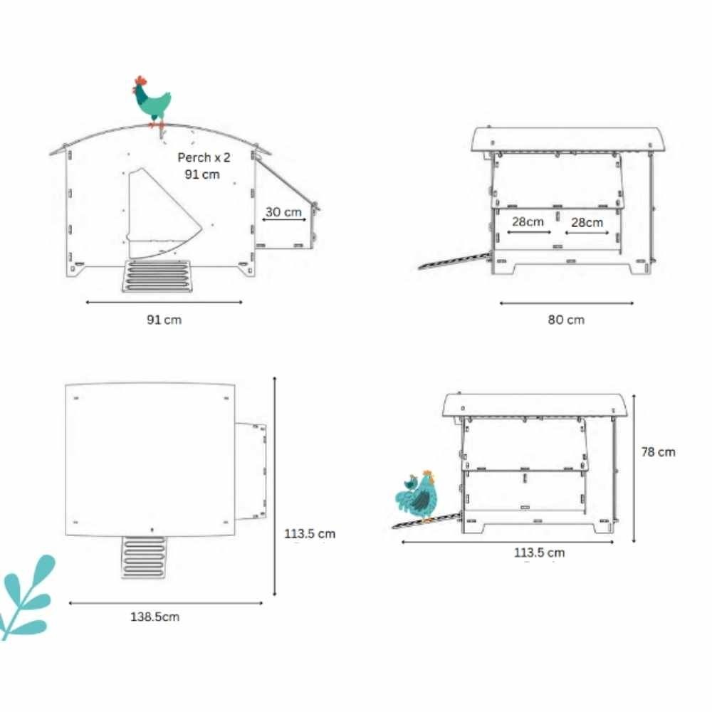 La ventilation réglable et l'excellente isolation thermique offrent des températures confortables toute l'année à l'intérieur du poulailler, tandis que les bords arrondis des perchoirs surélevés assurent un sommeil paisible et confortable à vos oiseaux.